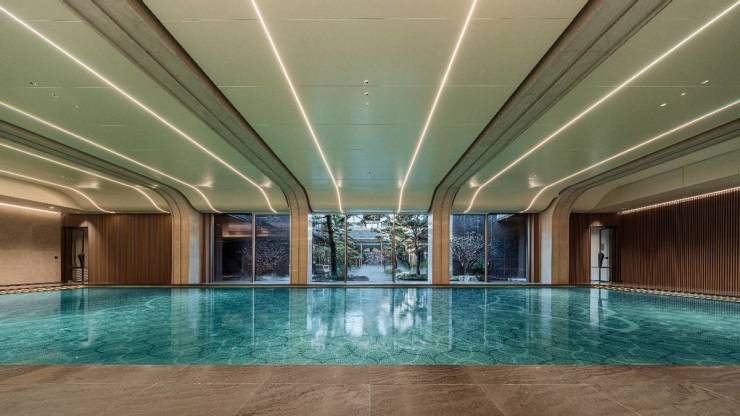 一进大堂,肌理漆的细腻触感碰撞透光云石的朦胧光晕,搭配对称布局的空间设计,进门即享尊贵仪式感;二进挑高序厅,用开阔尺度隔绝城市喧嚣,实现从繁华到静谧的自然过渡,让身心瞬间放松;负一层功能区直接拉满 —— 恒温泳池、瑜伽室、私宴厅等九大场景齐全,私宴厅采用高品质装修材料+精致灯光设计,商务宴请有排面、家庭聚会有温度,完美匹配高端圈层多元需求