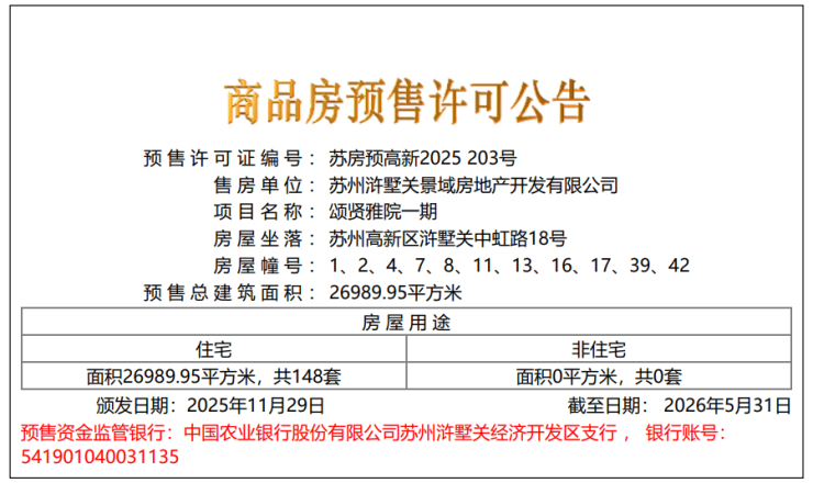 浒墅关正芯彻底沸腾!备受全城瞩目的绿城兴贤澜颂,重磅斩获商品房预售许可证!作为板块近十年罕见的1.2低容积率纯墅区,这座由绿城匠心淬炼的东方美学标杆,终于迎来首开倒计时——合院(备案均价25600元/㎡)与洋房(备案均价23500元/㎡),双稀缺产品同步登场,直接给苏州高端人居市场投下一枚“王炸”,重新定义浒墅关高端宜居新高度!