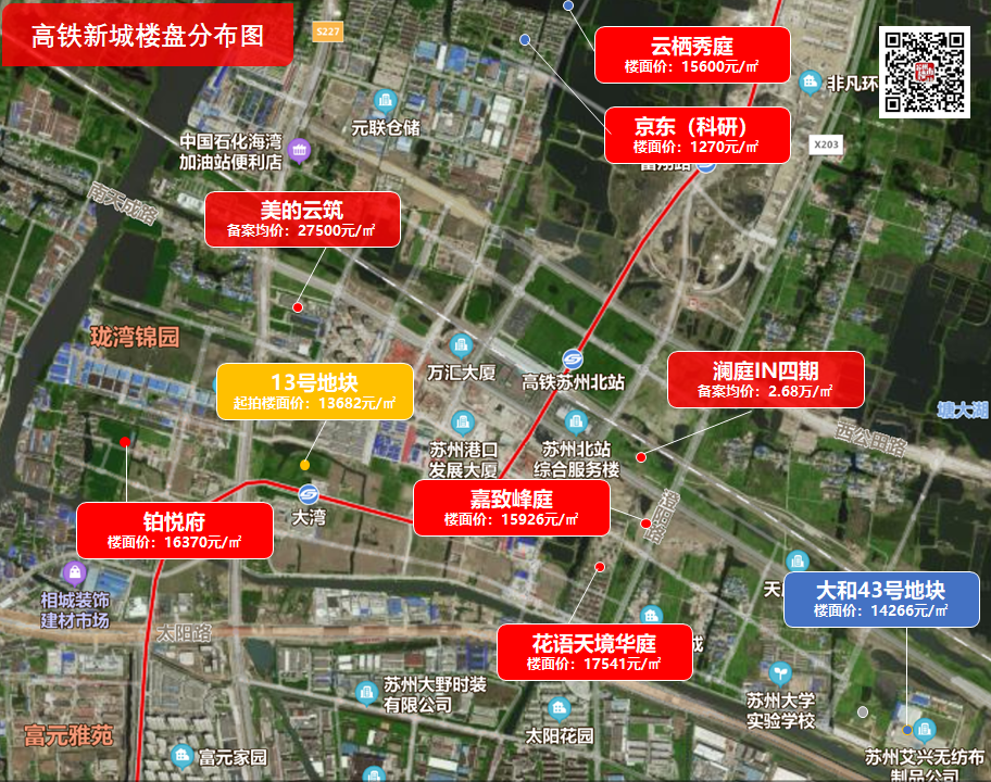 无独有偶,就在2022年苏州排名前列波挂地中,高铁新城挂出了排名前列个地块。起拍楼面价约13682元/㎡。