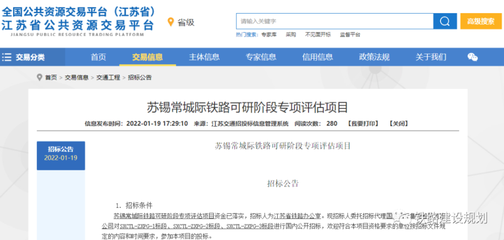 2022年1月19日,苏锡常城际铁路可研阶段专项评估项目资金已落实,进入国内公开招标阶段。