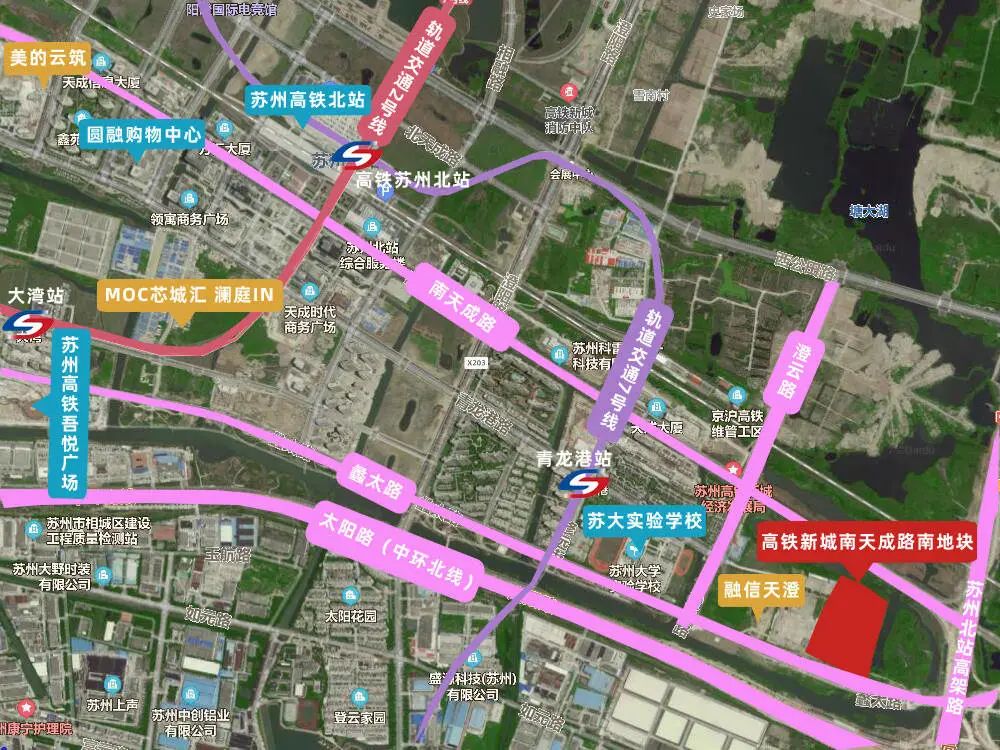 该地块位置非常优越,位于高铁新城融信天澄旁,毗邻苏州大学实验学校。根据规划,西侧将建设一所幼儿园和苏大实验高中校,可满足孩子的一站式教学需求。近距离在建7号线地铁、2号线高铁北站,东侧就是苏州北站高架路,交通非常方便。