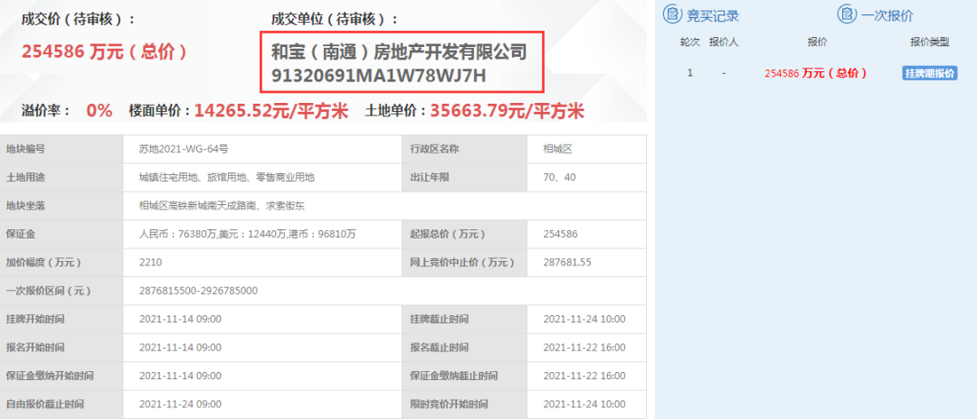 2021年,大和房屋时隔14年重回苏州,以成交总价约25.45亿,楼面价14266元/㎡竞得高铁新城64号地块。