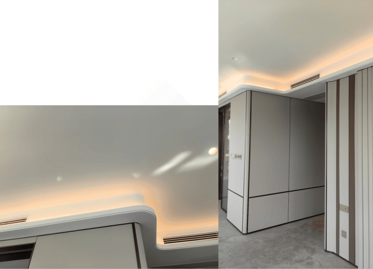 最大程度解决了美观和室内光源的问题,与此同时在室内创造体感的舒适感与视觉的层次感