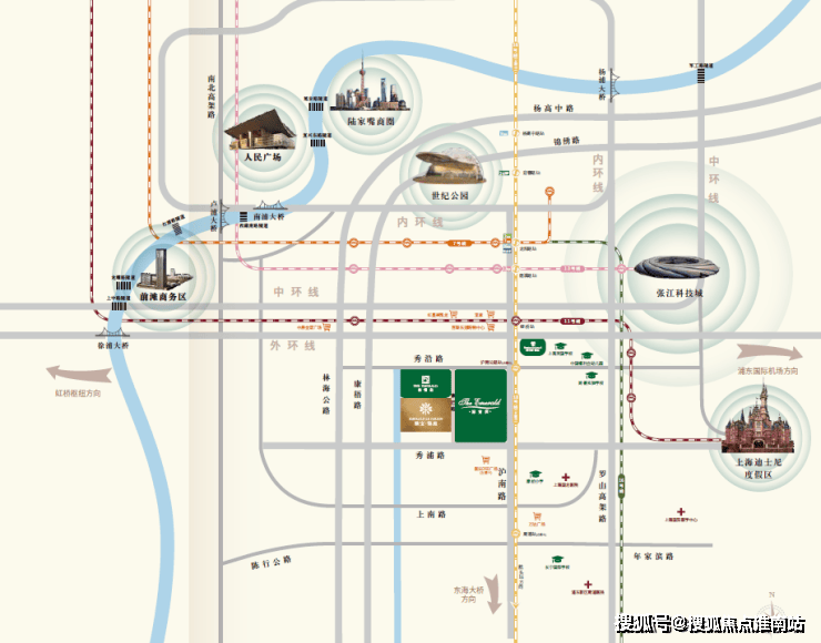 并且,康桥凭借区域内的中环线、S20、11号线、18号线等道路交通设施,把康桥和陆家嘴、北外滩、前滩、张江科学城等城市重大CBD连成一条黄金轴线.