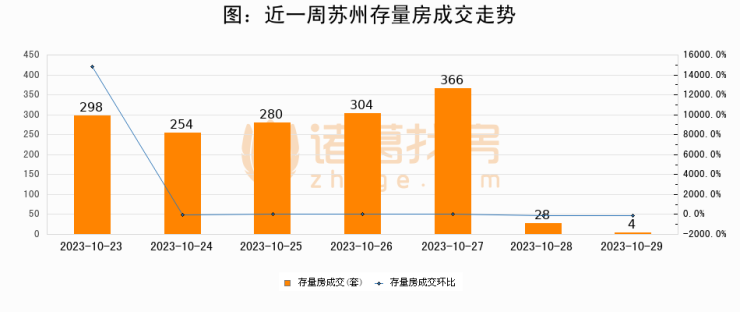 从存量房来看,2023年10月29日苏州存量房单日成交4套,比昨日减少24套,环比下降85.7%。从近一周存量房成交来看,苏州存量房日均成交套数为219套,10月29日单日成交4套,低于近一周平均水平98.2%。