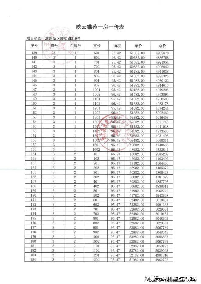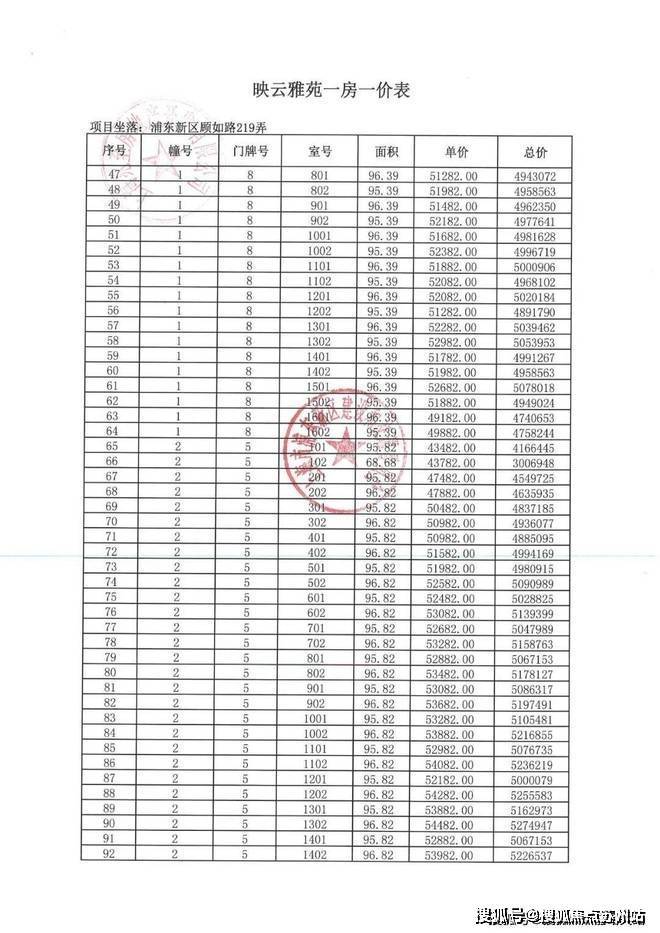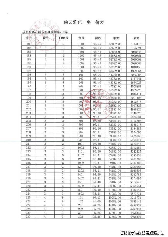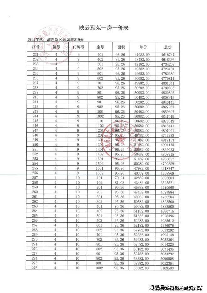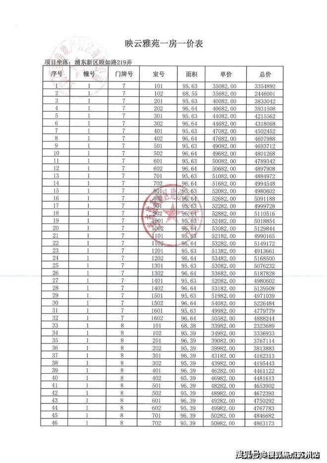 48、均价:即物业的平均销售价格,将本物业各套房子的销售价格相加之后的和除以各单位建筑面积的和数,即可得出每平方米的均价)。