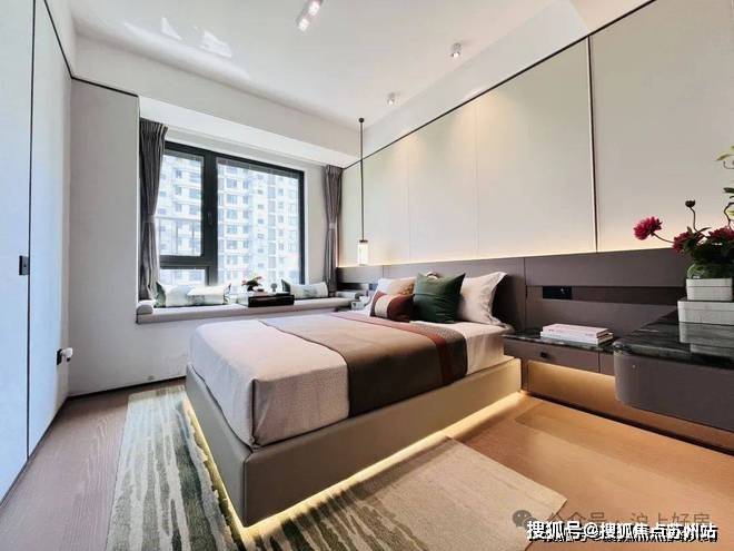 两间卧室朝南,均带有飘窗,主卧自带独立卫浴,小户型也可以拥有酒店套房般的体验。北向房间设计双飘窗,这也就意味着拥有双向景观,给了生活更多一种的可能。