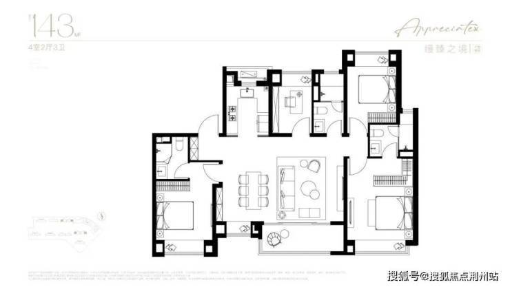 终极改善的顶奢4房!极端宽奢的南北通透户型飞机户型,你能想象到的美好都能在这个户型中体验到。
