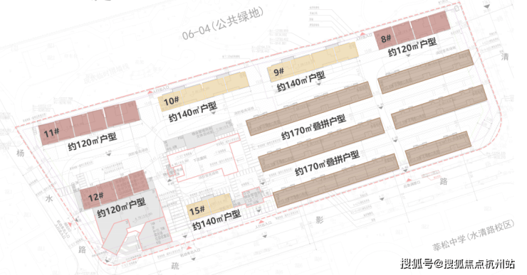 地块地处水清路与疏影路交叉口,东至水清路,南至疏影路,西至杨水路,北至用地红线,占地26200㎡,容积率2.5.