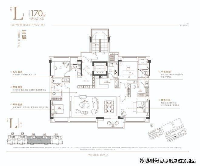 华润置地时代之城高层产品将百平上下的改善户型做出了轻奢级的居住体验,把约133㎡的改善四房做出了豪宅的尺度感。