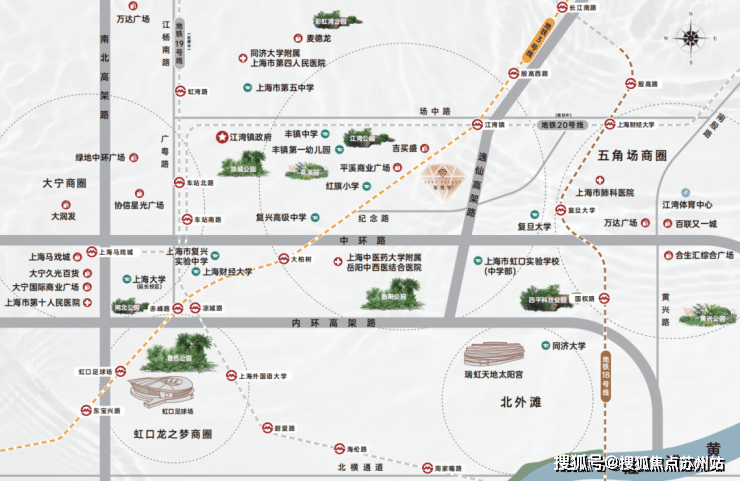 根据虹口2035规划,将构筑“一核三片两轴一环”发展格局,提升城区能级和核心竞争力,实现“人文虹口,魅力之城”的总目标。(信息来源:虹口区规划和自然资源局)本案距中环直线距离仅约600米,优享区域发展优势与内中环利好辐射,以高品质住区匹配城市发展潮向。