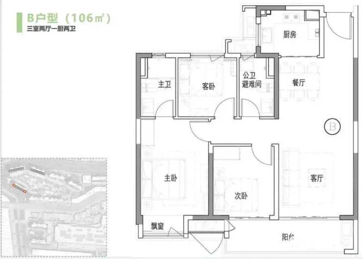 【建面111㎡3居】210.0-250.0万-分布于3#2#,3梯6户,层高2.90米,总楼层27F
