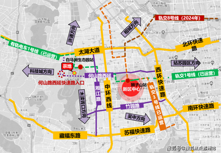 苏州发展最成熟的就是“一体两翼”的新区和园区,“东有金鸡湖,西有狮子山”,代表了苏州两大顶流板块, 而狮山未来将成为“狮山国际商务创新区,随着狮山板块的不断发展饱和,政府依托龙池风景区打造了狮山生态核心宜居板块,也就是项目所在位置。未来此区域将是大狮山最生态宜居、最低密度的居住的板块。而随着这条贯穿新区东西的何山路通车,迅速拉通了我们生态核心板块与狮山CBD核心区的距离,将两个板块紧密融合在一起。
