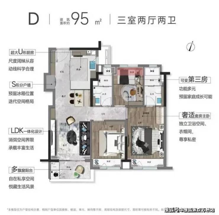 目前,朗拾花语售楼处电话/地址:400-8828-814☎✅✅✅在售的主力产品为建筑面积约92㎡房源和建筑面积约95㎡房源。其中,建筑面积约92㎡户型毛坯房源可实现创新三房变两房的设计,打造百平内约6m大横厅,30㎡的客厅创造150㎡大宅的厅堂尺度,LDK一体化、一体主卧套房设计等等,空间感与收纳感更是让人惊艳,无可挑剔。