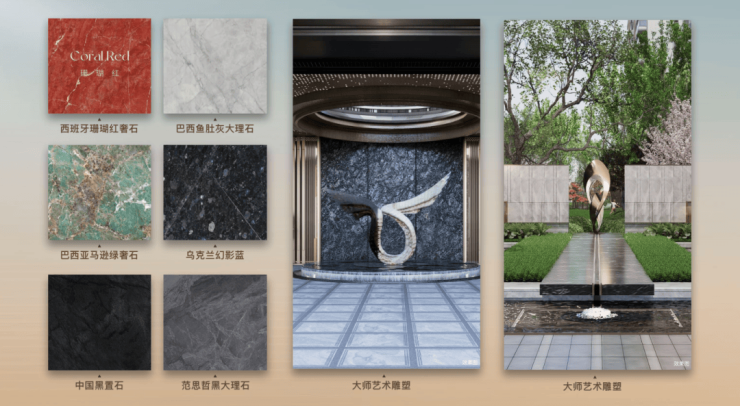 约110M超大尺度城市界面,仪式水景拾级而上,定制级艺术雕塑,酒店礼遇仪式侯迎隐奢归家。