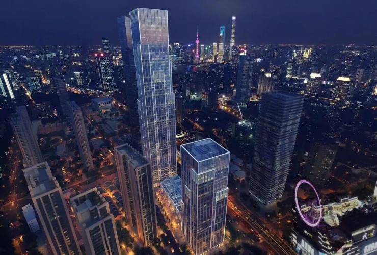 正如一枚硬币有两面,苏河湾也有自己的另一面,这里还是魔都不可多得的“超高层建筑最密集的区域”——以龙盛湾上约320米办公楼为“静安第一高楼”(建设中),其他约300米、约250米、约200米、约150米高楼依次铺开,形成一道连绵起伏的天际线!