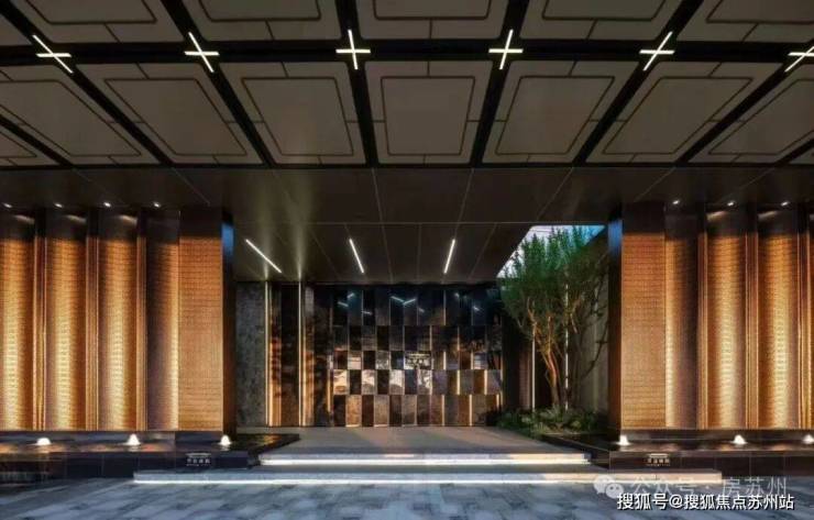 三段式外立面经典“构图”,融合苏式屏风,用大面积玻璃局部点缀奢石,顶部采用东方屋檐的建筑形制,尽显东方之美。