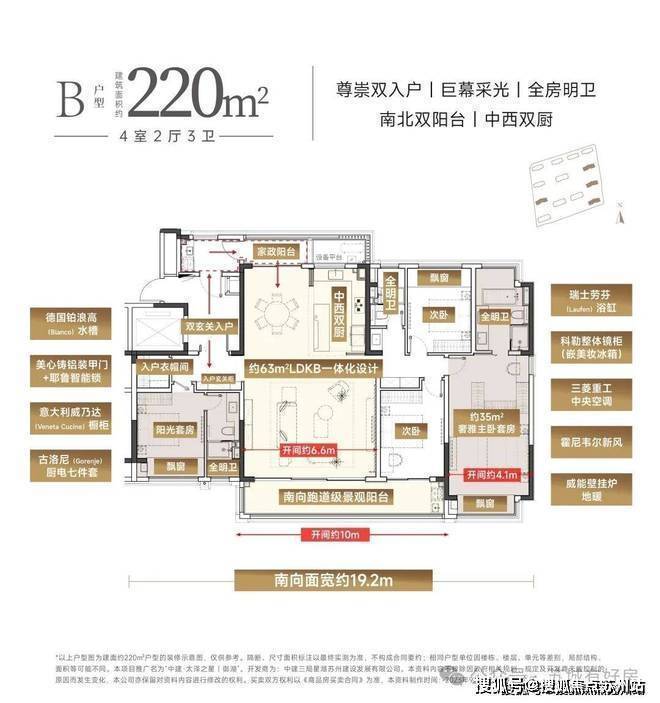 起步建面约175㎡,户均约220㎡+,最大约265㎡,