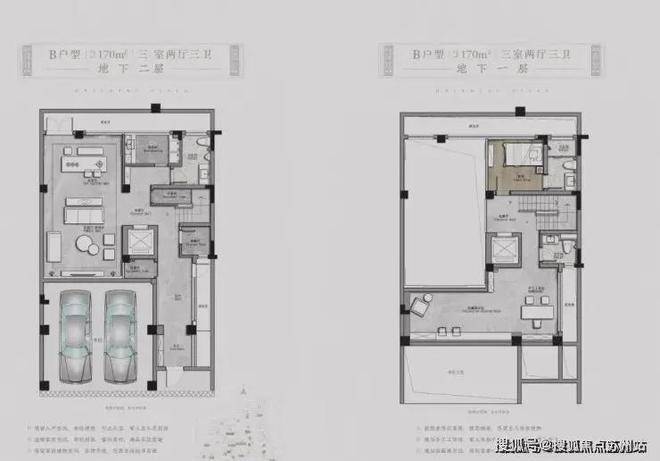 以项目东北角的建面约330㎡H户型为例,地下二层的室内可配置保姆房、
