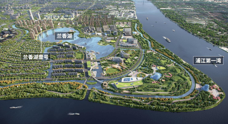 黄浦江从东、南两面环抱整个兰香湖社区,东北侧有兰香湖作为水系中心,钥匙形的外观寓意“以智慧之钥,开启生活之门”.