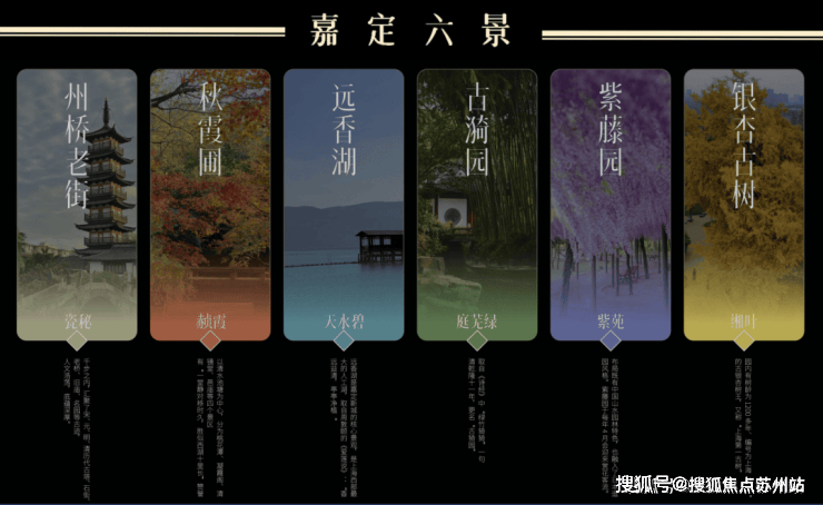 建筑们围合出的中心花园中,州桥老街、秋霞圃、远香湖、古猗园、紫藤园、银杏古树等嘉定6景被南山地产提炼、转译,形成了具有在地文化特色的6大景观主题空间。