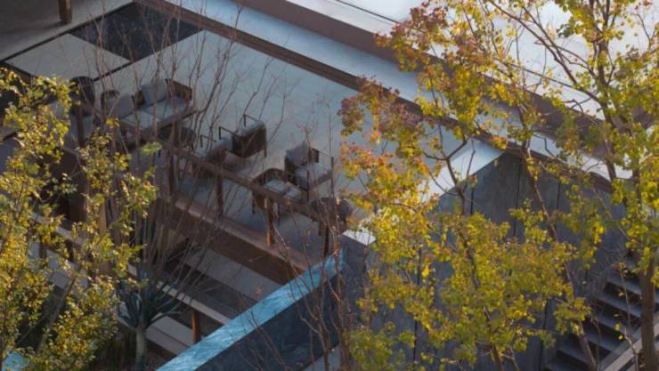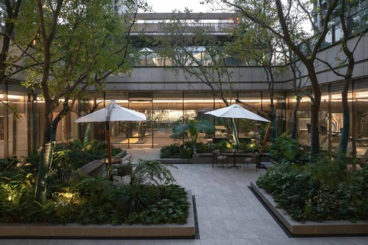 Under the building platform, the sunken garden is connected through extension, lifting and receding, which is fully utilized to create a social gathering place.