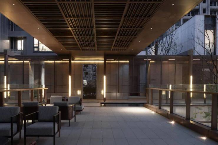 The meditation courtyard on the side of the corridor uses delicate and restrained design techniques and rigorous geometric language to create a quiet, elegant and orderly space.