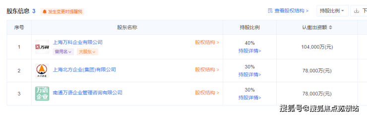 从目前北万的股权结构来看,万科(上海万科企业有限公司40%+南通万语企业管理咨询有限公司30%)占股70%!