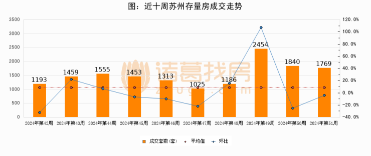 【苏州成交周报】第52周新房成交1150套,二手房1769套,涨价房源369套