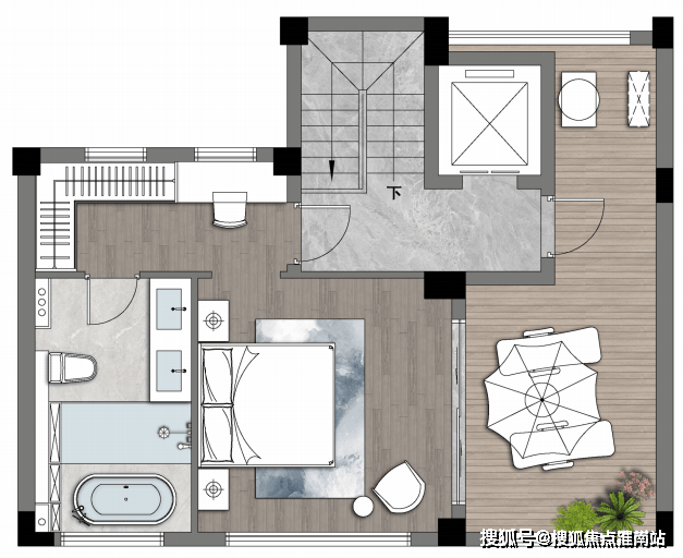 同样三楼也是带有露台的:结束一天工作后在这里喝茶聊天,这是普通平层无法实现的画面。
