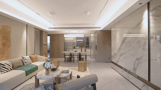 净水方面,配置前置净水和厨房直饮水机;洁净新风方面,配置新风系统为室内输送清新空气;静音方面,室内墙体采用静音墙体技术,利用隔音棉及隔音毡等材料,维护门窗均采用三玻,减少室外噪音干扰;此外,还采用同层排水系统、静音中央空调,共同打造更静谧、舒适的居住空间。