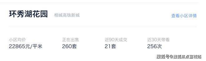 而环秀湖花园已经交房的房源,二手房挂牌均价22865元/㎡,近90天成交有21套,最近成交价格在2.1万-2.2万/㎡左右。