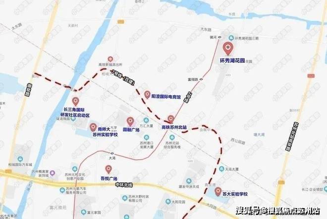 虽然环秀湖花园属于高铁新城板块,但从位置上来看,项目算是高铁新城北部环秀湖片区,距离苏州北站地铁2站路,目前环秀湖花园也是该片区唯一的住宅小区。