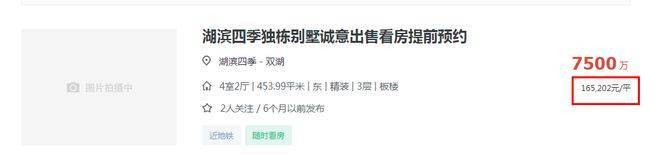 据链家信息显示,小区目前仅1套房源出售,建面约453㎡,挂牌均价约16.5万/㎡,总价高达7500万。