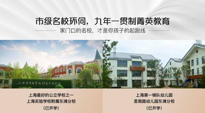 教育资源方面:上海实验学校附属东滩学校、上海市东滩思南路幼儿园、上海新纪元双语学校等全龄化教育资源;和项目一路之隔。
