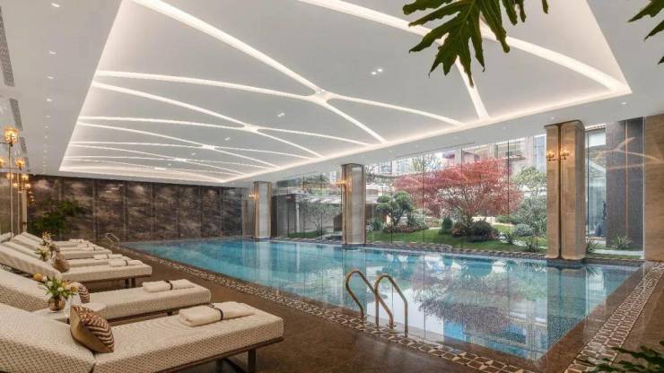 早上,可以去恒温泳池游几圈;
