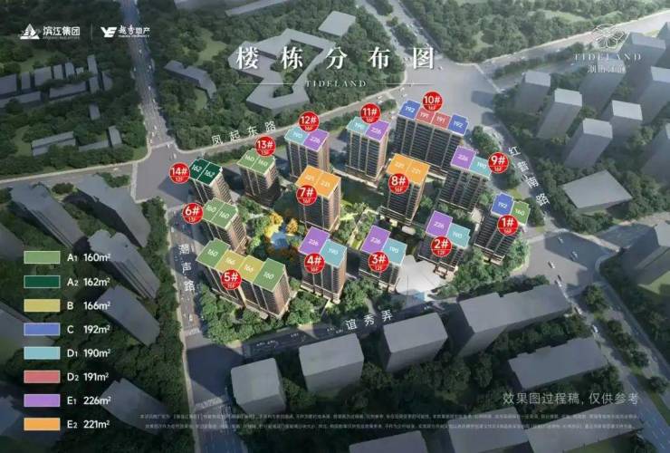 根据最新规划,滨江潮语江澜府共规划了14幢12-16F高层。