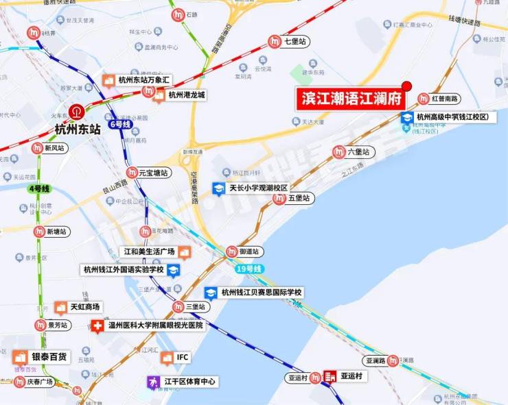 学校:浙江省杭州高级中学钱江校区直线约100米、杭州明远未来小学直线约200米等;