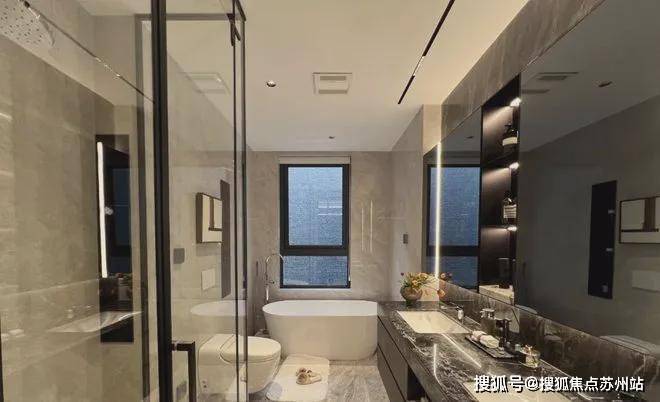 主卫配备汉斯格雅淋浴龙头、唯宝台盆、马桶,大浴缸、美妆冰箱定制交付。