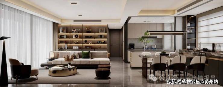 》半开放式厨房,可开合移门+互动岛台,增加厨房的社交性