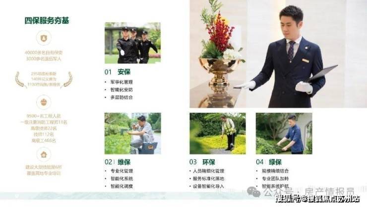 包括高规格、细致化的优质基础服务、园区服务、专属定制服务以及免费空关房温馨服务等,