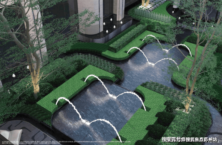 中央休闲庭院空间,上海海上清和玺官方售楼处电话:400-8123-664一场浸润灵感的艺术水景,自然与潺水和鸣间,分享生活的乐趣与奇妙。