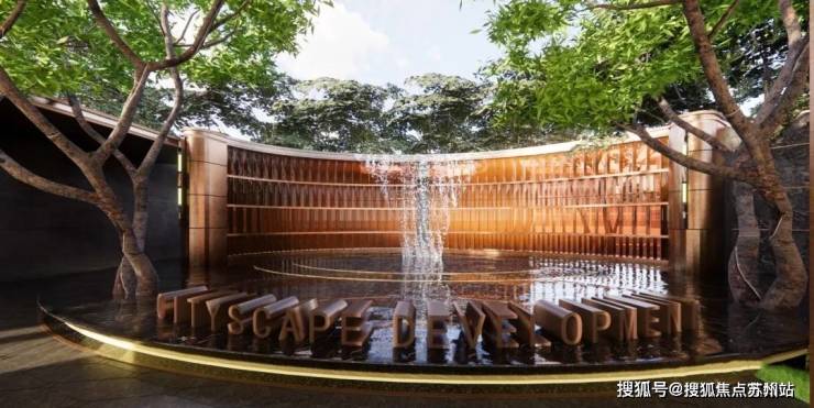 从大门到大堂之间,两侧设置了各色拟态跳泉和跌水,而跨越大堂进入小区内部,后场依然有大面积的镜面水。