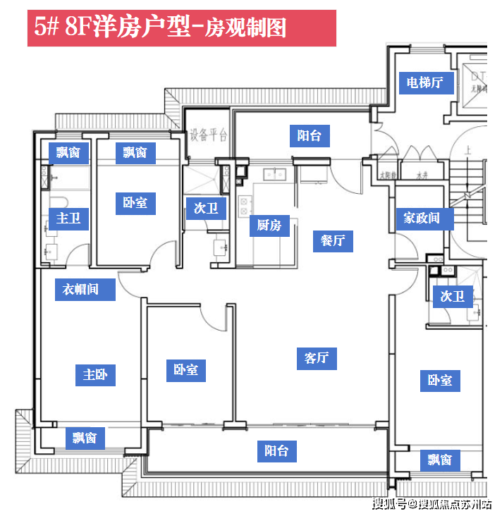 南向双套房设计,主卧贴心套房设计,配备了私人卫生间和衣帽间;多飘窗设计,有一定的赠送空间。