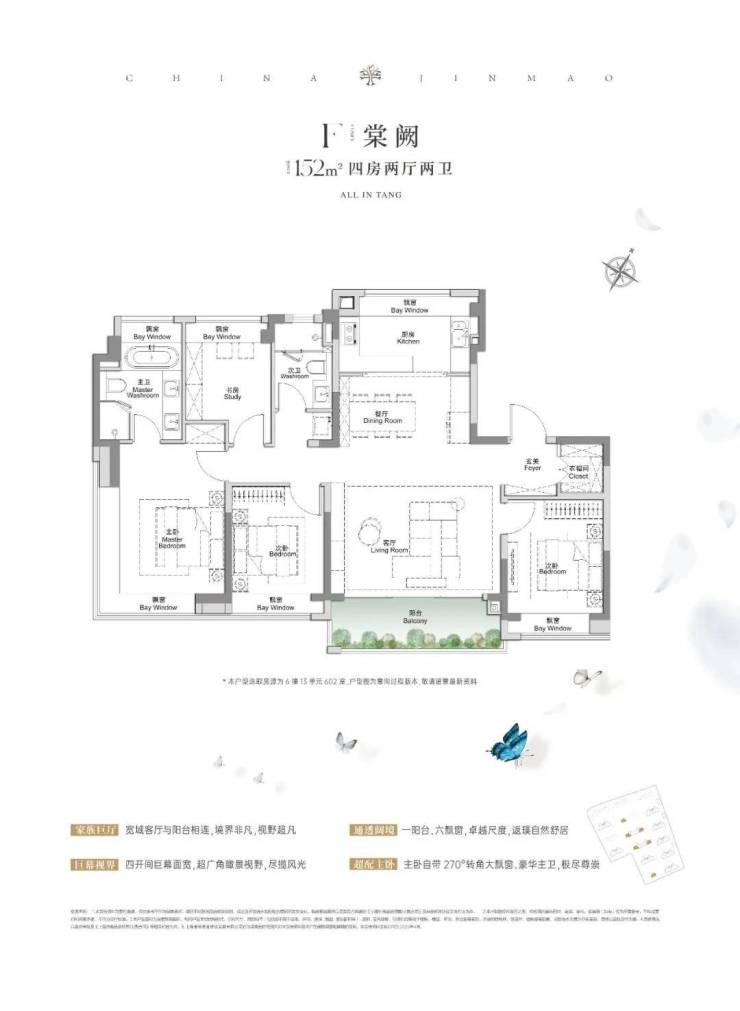 全景舱艺境美宅,标准层约3.1米层高、270度全景飘窗、LDKB一体化、南向跑道阳台、超12米南向全屏开间,无限视野尽收眼底,还有超金喜的满配精装,全上海只有央企金茂才能做得到。