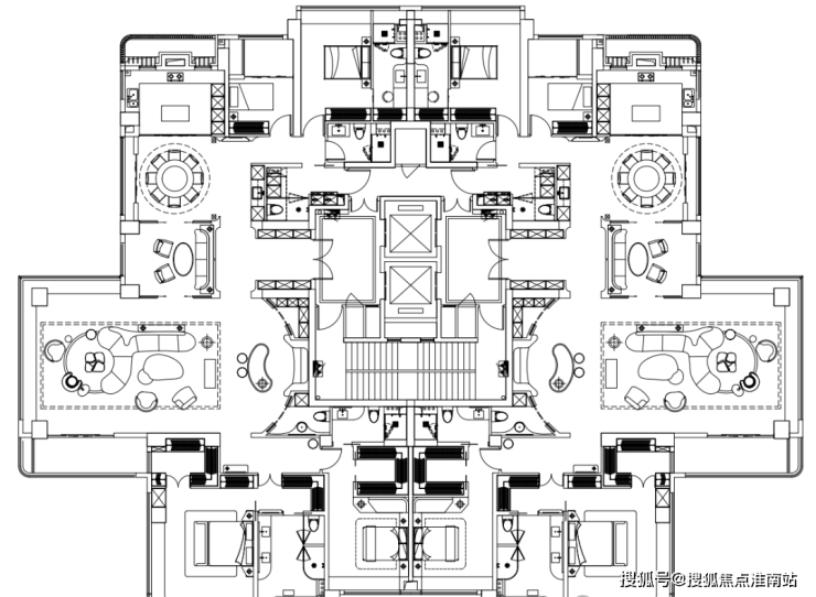 以下为建面约370㎡户型过程稿亮点: