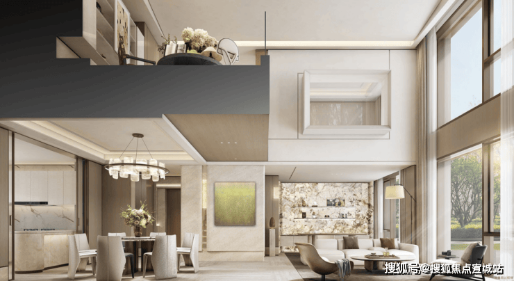 同时,项目巧妙地将外部浦南运河公园绿带纳入社区景观体系,形成“一带两轴三庭”的沉浸式结构,让回家成为穿越公园的仪式,生活如常居度假秘境。
