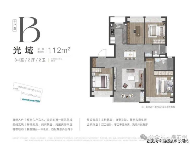 户型设计却非常神,罕见做到3房2卫,居住体验赶超高层110平+户型;
