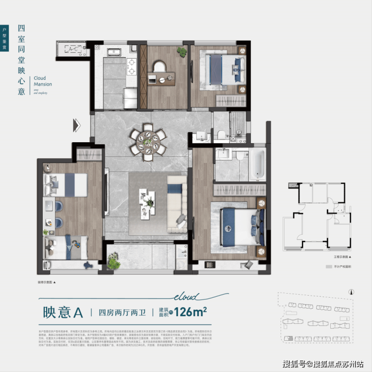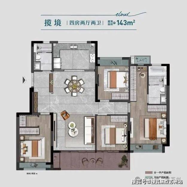 现90㎡小户已售罄,仅剩126平和143平在售,得房率超86%,精装交付。