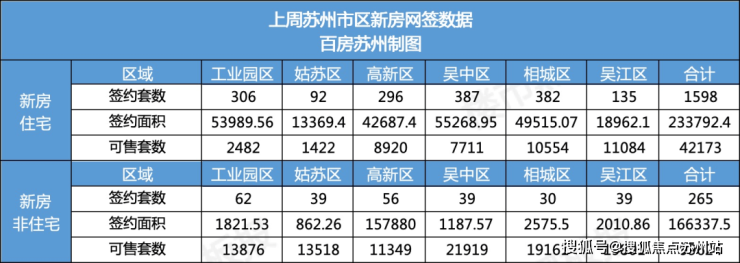 新房非住宅共网签265套;工业园区62套;姑苏区39套;高新区56套;吴中区39套;相城区30套;吴江区39套;